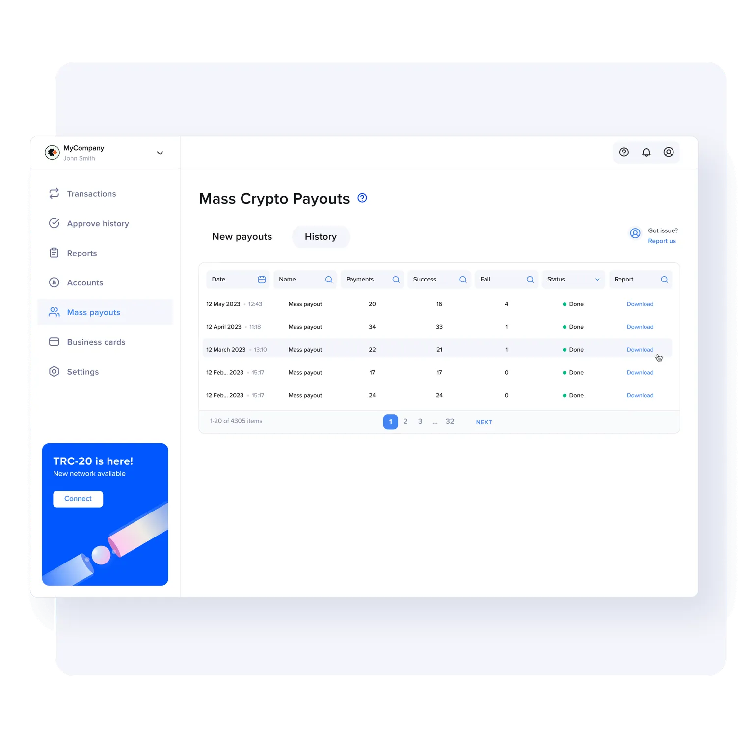 Automated payroll system allows you to pay your employees and affiliates in crypto, following your own schedule. No more tedious work, everything is done for you automatically